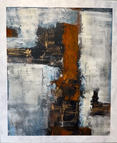 As the artist who has the privilege of applying paints, mediums, and other materials, I create pieces whose purpose is to provoke curiosity and intrigue in the mind of the viewer by causing the viewer to ask questions like “how did he do that”, “what is underneath that layer”, or “did he put the red on before the blue or vice versa”? For me, that is what abstract art is all about. When painting, I am not producing an abstraction of some figurative object or scene; instead, I produce paintings whose composition speaks to the viewer in private hoping only that my painting has indeed sparked the mind of the viewer.