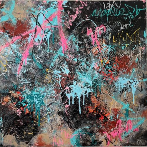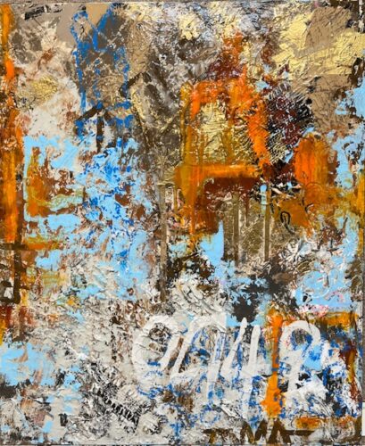 When I start a painting, I often have a vision in mind of what I intend to produce yet, more often than not, the end product looks vastly different from my original vision. While this process bothered me greatly when I first started painting, I have now surrendered to the phenomenon by just letting the paints and other materials take me where they want to go – I need only remind myself to sit back and enjoy the ride. Sometimes the ride will produce a bold colorful painting, and sometimes it will produce something gritty and textural, and occasionally a combination of the two.
